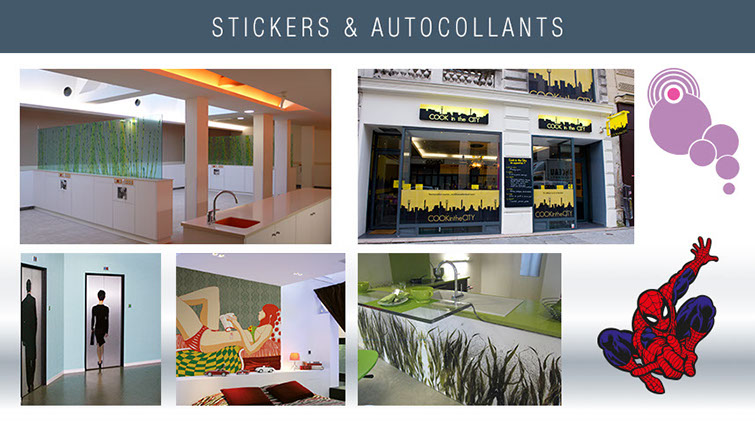 Décoration d'intérieur, PLV, support rigide ou souple, sol personnalisé, stands, bâches, vinyles, enseignes...